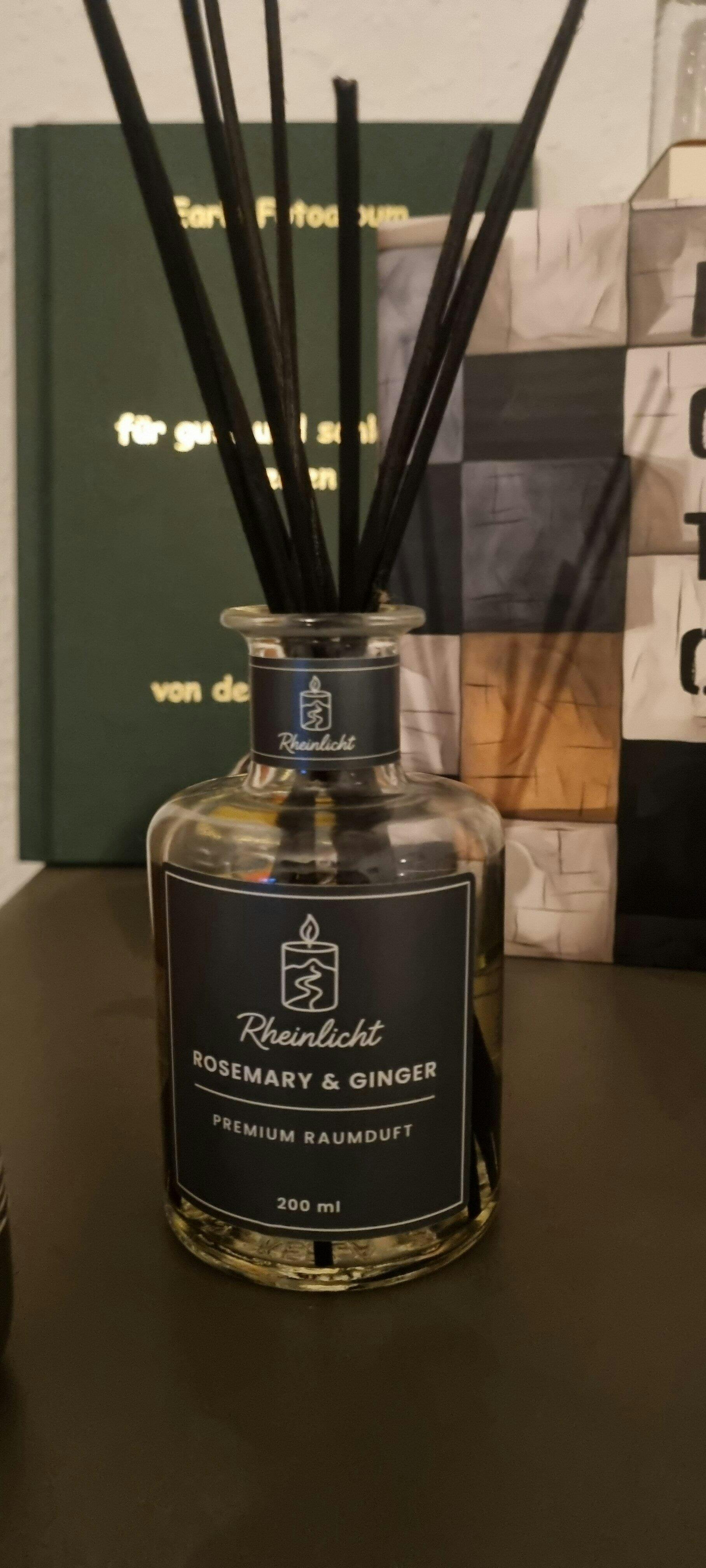 Der Rosmarin-Ingwer-Duft kombiniert die grüne Frische von Rosmarin mit der warmen Schärfe von Ingwer und schafft ein lebendiges, harmonisches Ambiente.